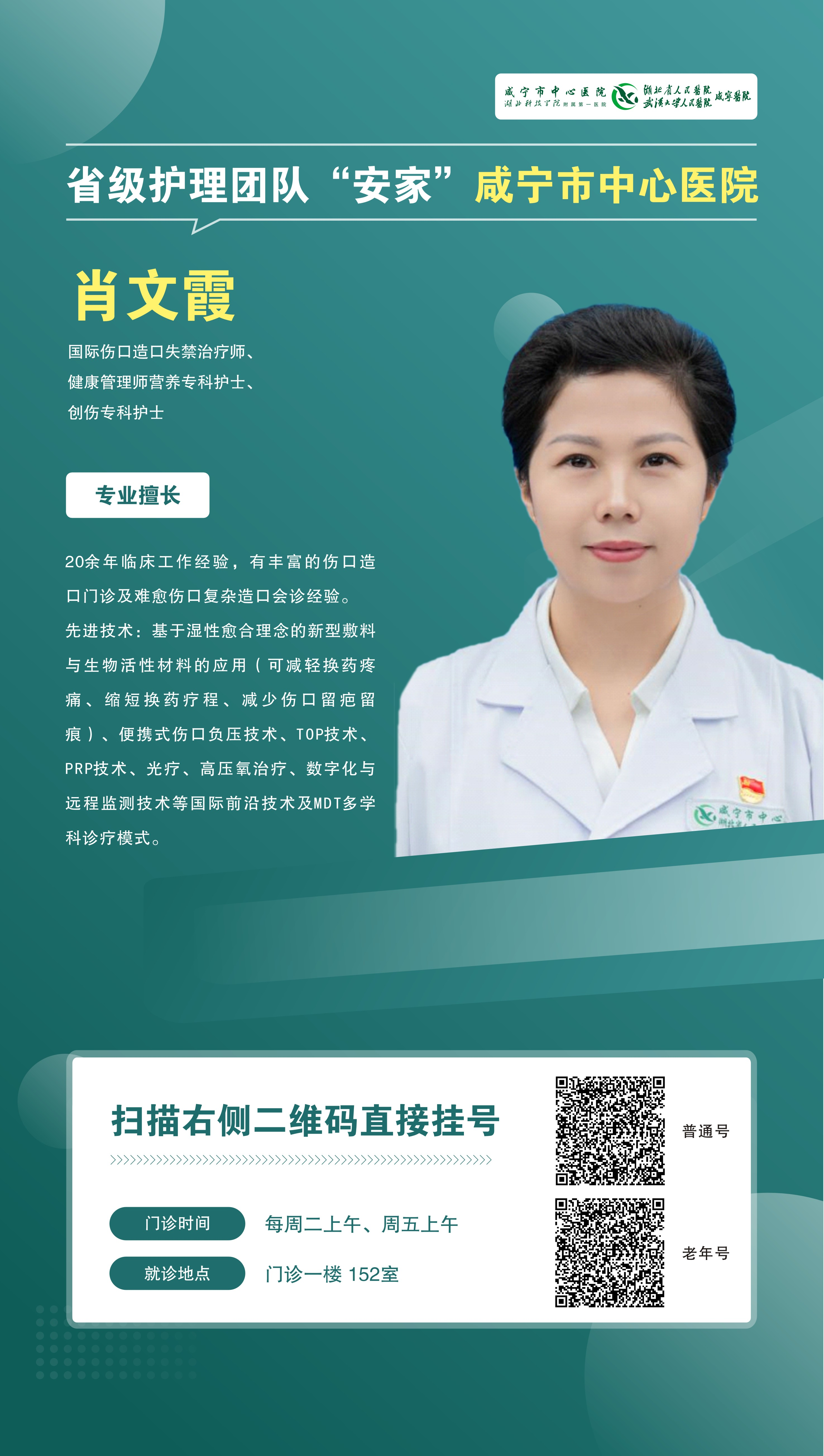 疑难伤口造口门诊 | 周二上午 周五上午 | 肖文霞 ET | 门诊一楼 152诊室 |