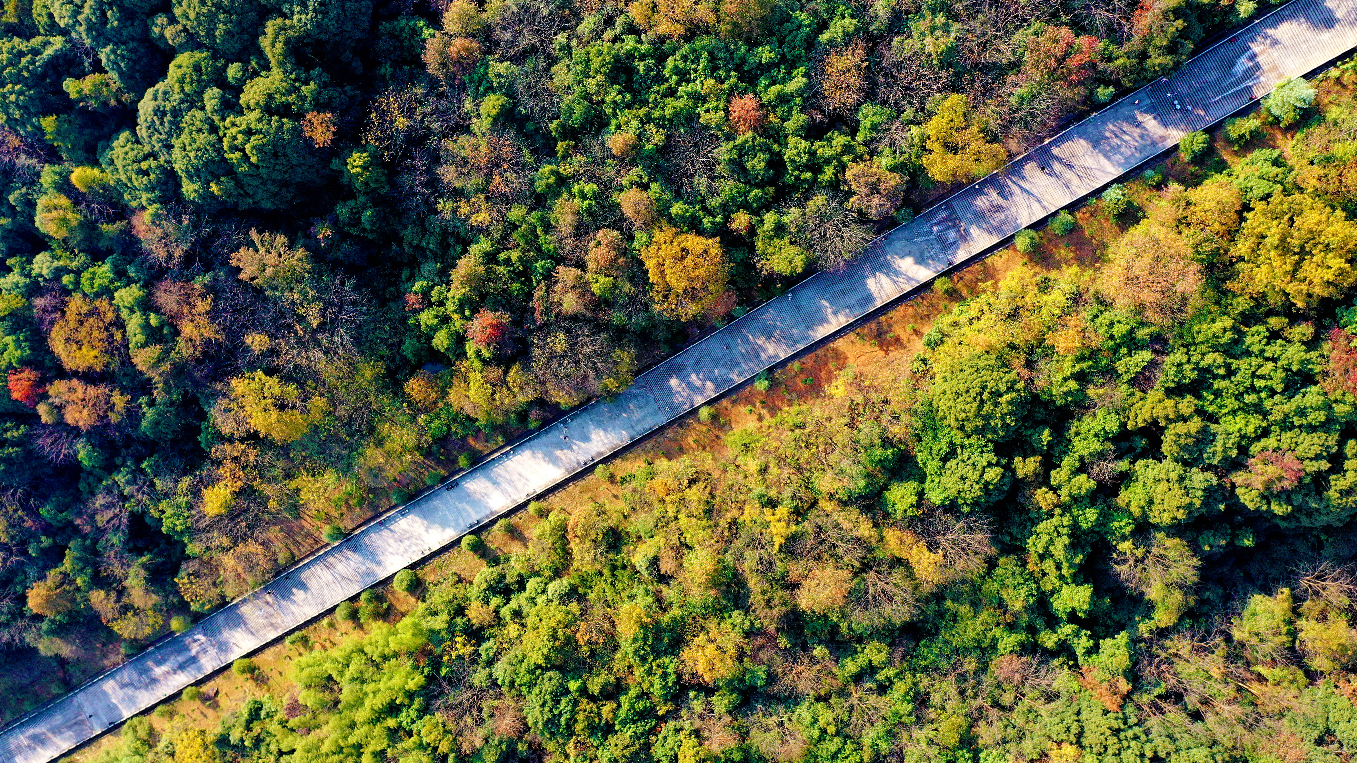 11月16日,潜山国家森林公园层林尽染。漫山的林木褪去翠绿,迸发出红、黄、橙、紫等多重色彩,似大自然肆意挥洒的调色盘。市民三五成群,或悠然漫步,或驻足赏景,沉醉在这如诗如画的美景之中。