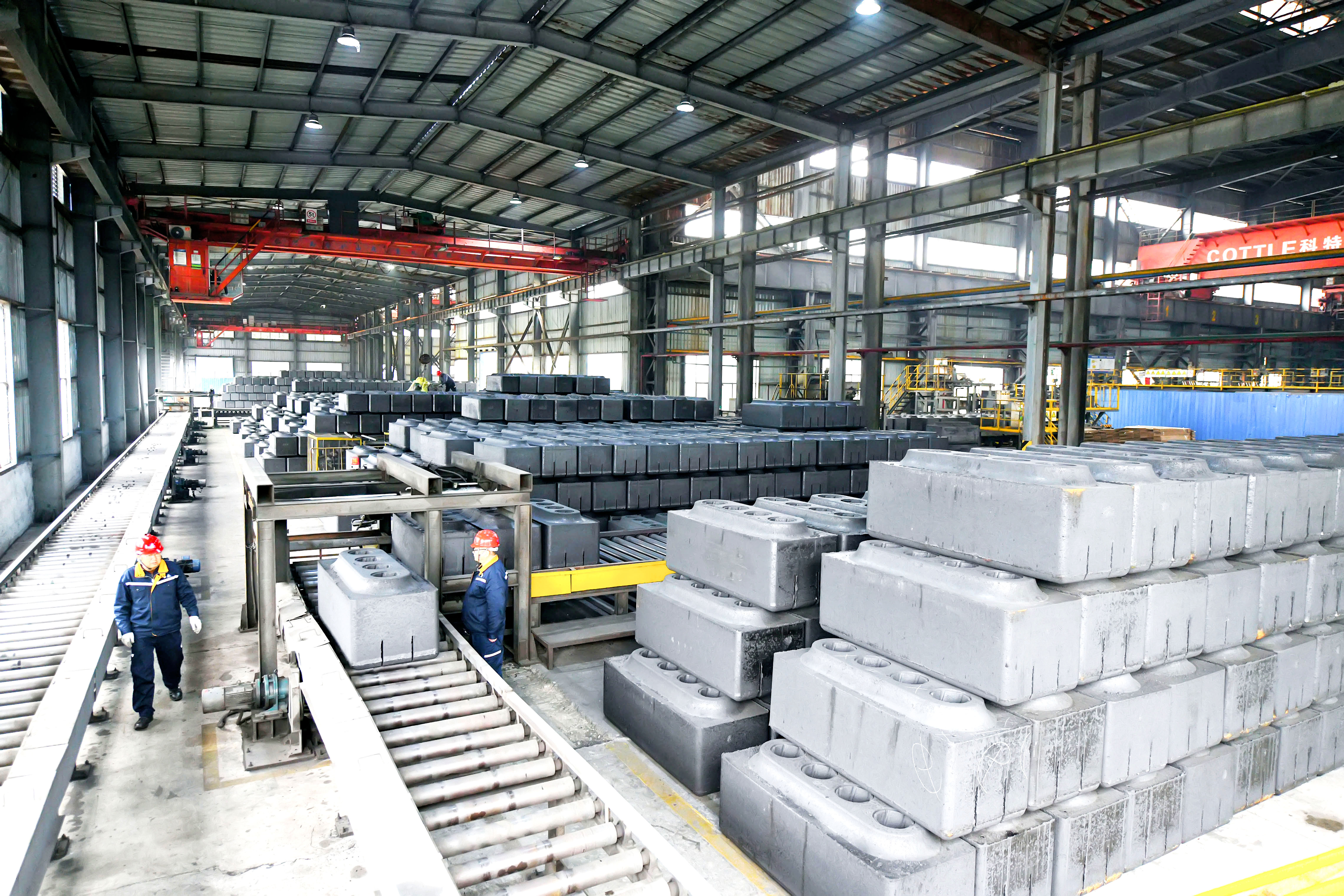 12月23日,赤壁长城炭素制品有限公司焙烧工区里,焙烧炉生产线生坯转运、编组、装炉工作井然有序。