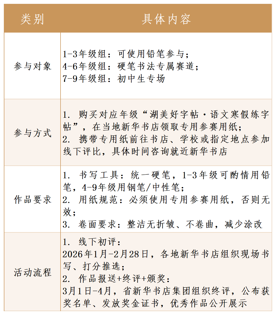 这个假期,让好书成为成长伴侣,让书写练就扎实功底,更让21 天的坚持沉淀成终身受益的阅读习惯!赶紧挑选活动推荐书目,打磨征文、录制演讲视频,或备好字帖参与书法评比,一起奔赴这场充满书香与惊喜的文化之约~我们在新华书店,期待你的精彩参与!