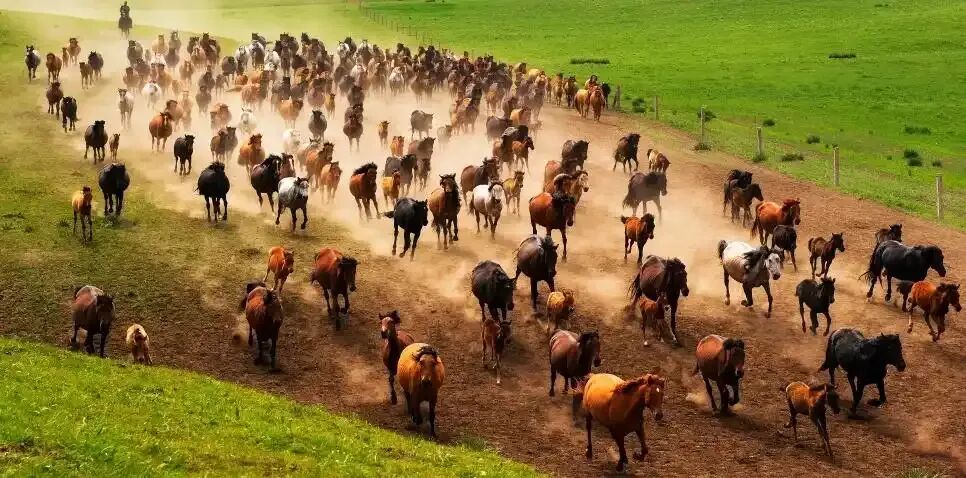 一匹马,一群马,跑出北美的丛林,越过白令陆桥,向着亚欧大陆、非洲大陆奔跑;溅起俄罗斯草原的青泥,北冰洋的雪风裹挟西伯利亚的冷风,撩起那渐密渐长的鬣鬃和平行于地平线的马尾;东方的蒙古草原,是这场接力长跑的诗和远方。