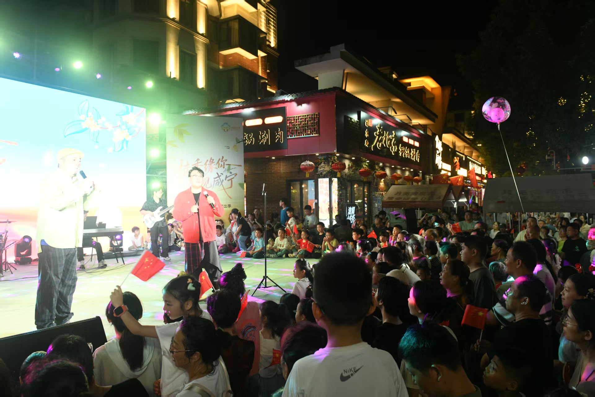 金风送爽,丹桂飘香。10月1日晚,以“强国复兴有我”为主题,由市文旅局主办,市博物馆、市美术馆、市新时代文艺中心承办的“悦见咸宁·盛世和鸣”2025年国庆、中秋文化惠民展演活动在月亮湾步行街举行。