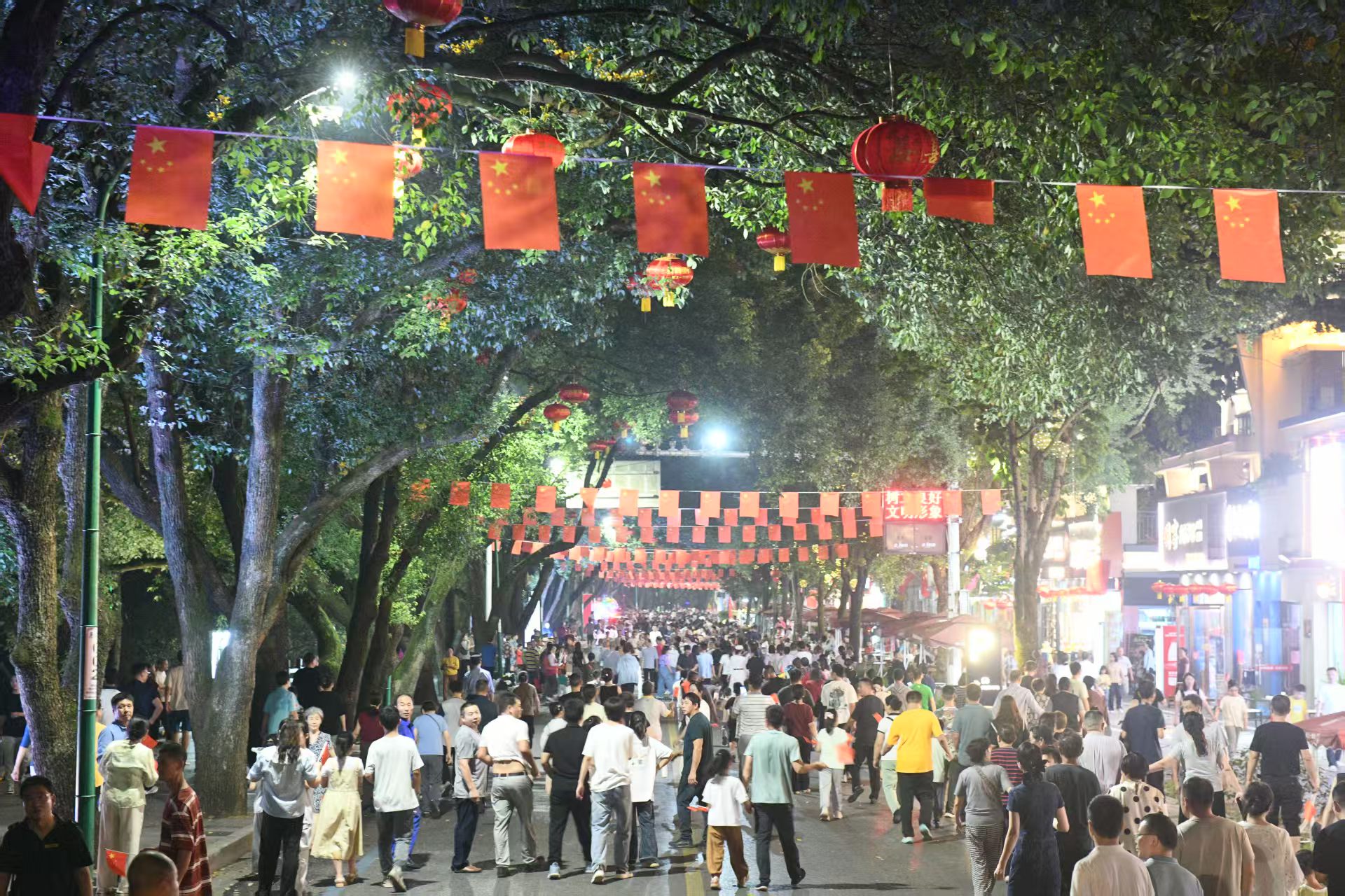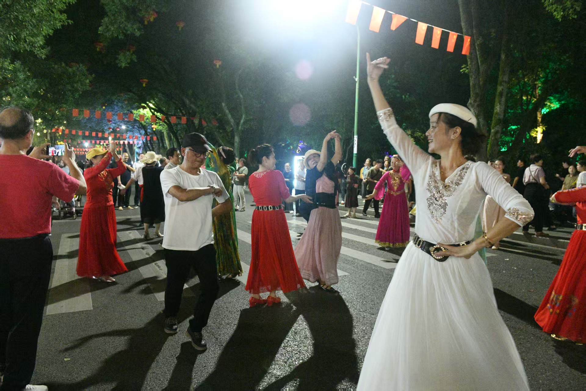 当晚,“桂香缘你悦见咸宁”另一场节目表演在该街区同步举行。月亮湾街区还有来自民间团队、个人自发的艺术表演,游客、市民在此享受视觉盛宴,感受着双节首日的快乐。