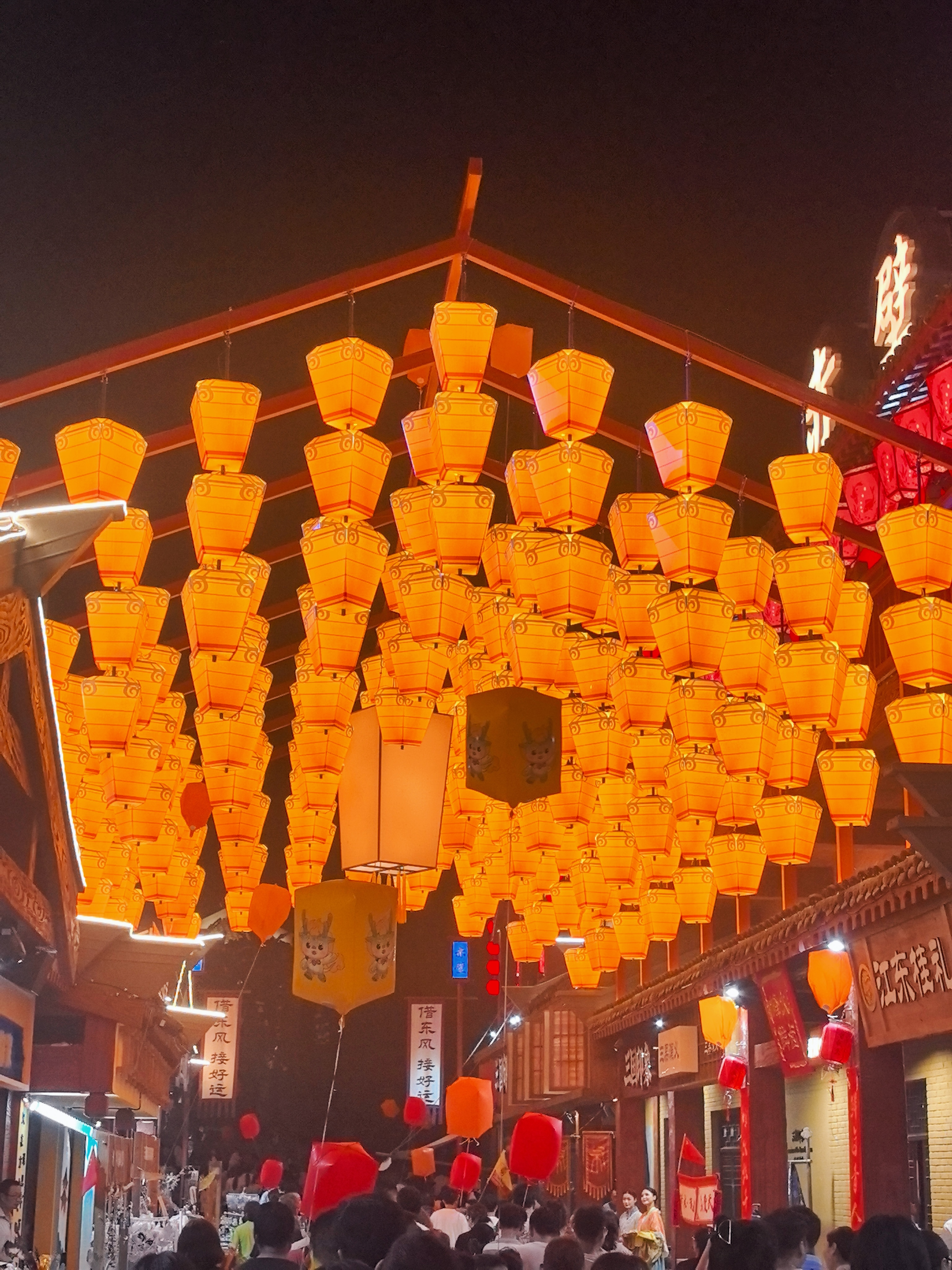 晚上七时许,随着战鼓声破空而来,“赤壁借东风·千灯祈好运”主题活动拉开帷幕。身披鹤氅、手持羽扇的“诸葛亮”登临七星祭坛,击鼓诵文:“天地玄黄,日月齐光,今有千灯,聚此一方——”