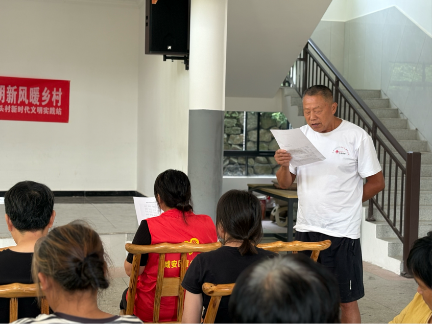 9月18日,咸安区大幕乡马安头村组织开展了村规民约学习与移风易俗宣传行动,通过集中宣讲、案例讲解、文化下乡等形式,结合支部主题党日活动,多措并举推动文明新风在全村落地生根。