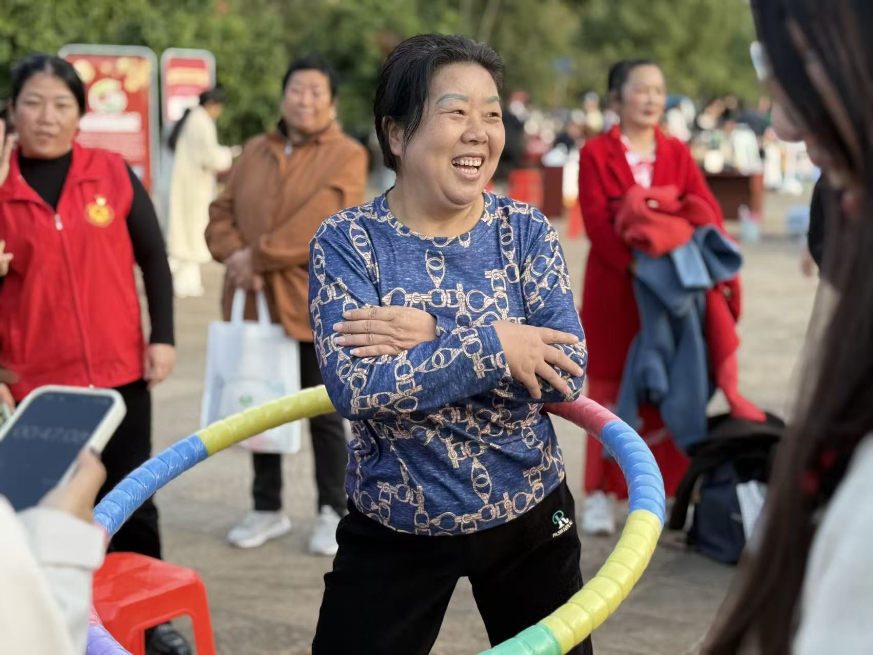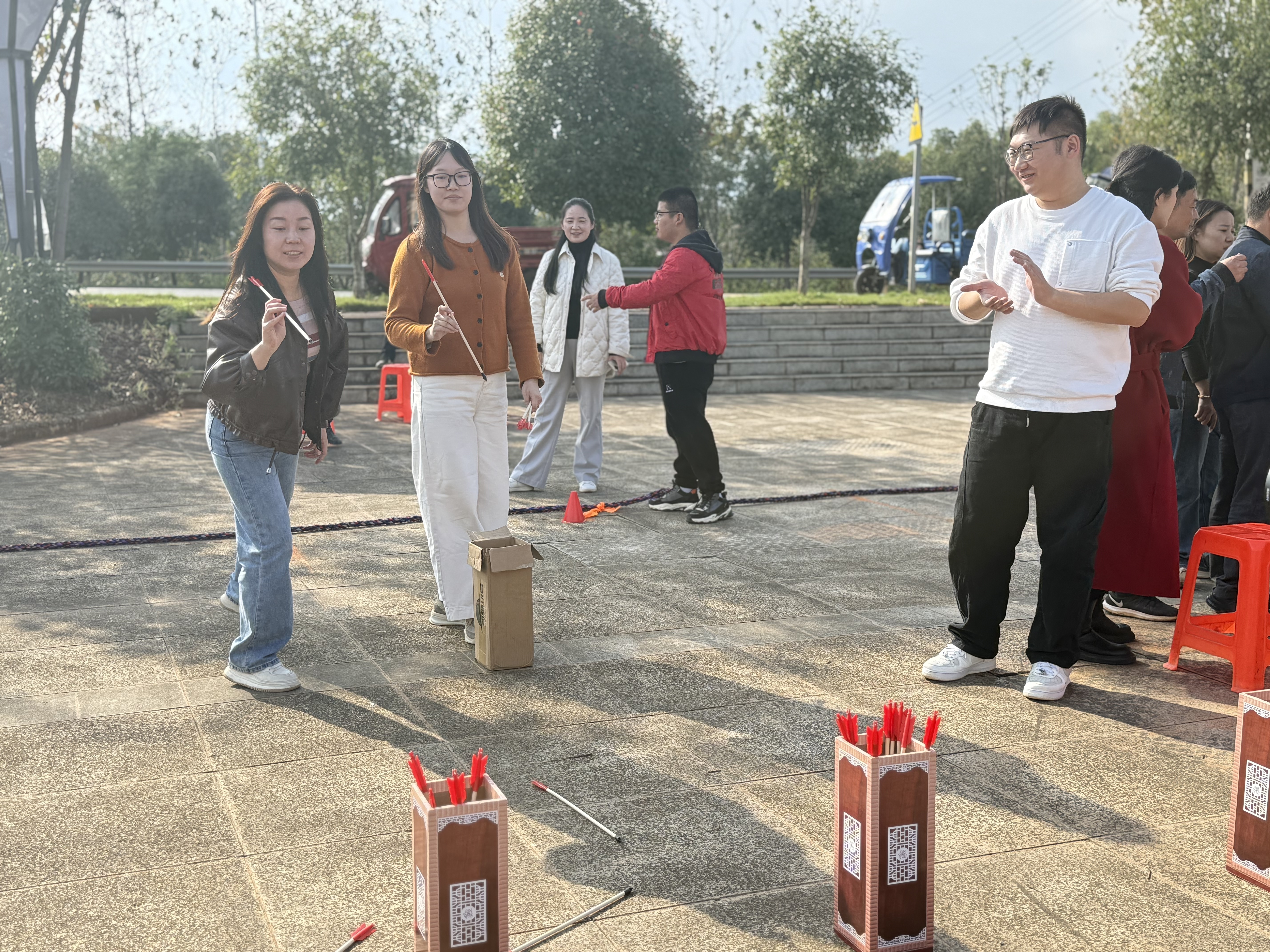 活动一开始,整个广场便瞬间“沸腾”。这边拔河比赛号子震天,8支队伍铆足了劲一较高下;那边投壶、踢毽子、转呼啦圈等趣味运动同样吸引了大批村民一试身手,无论老少都玩得不亦乐乎,充分展现了“我行我酷”的邻里活力。