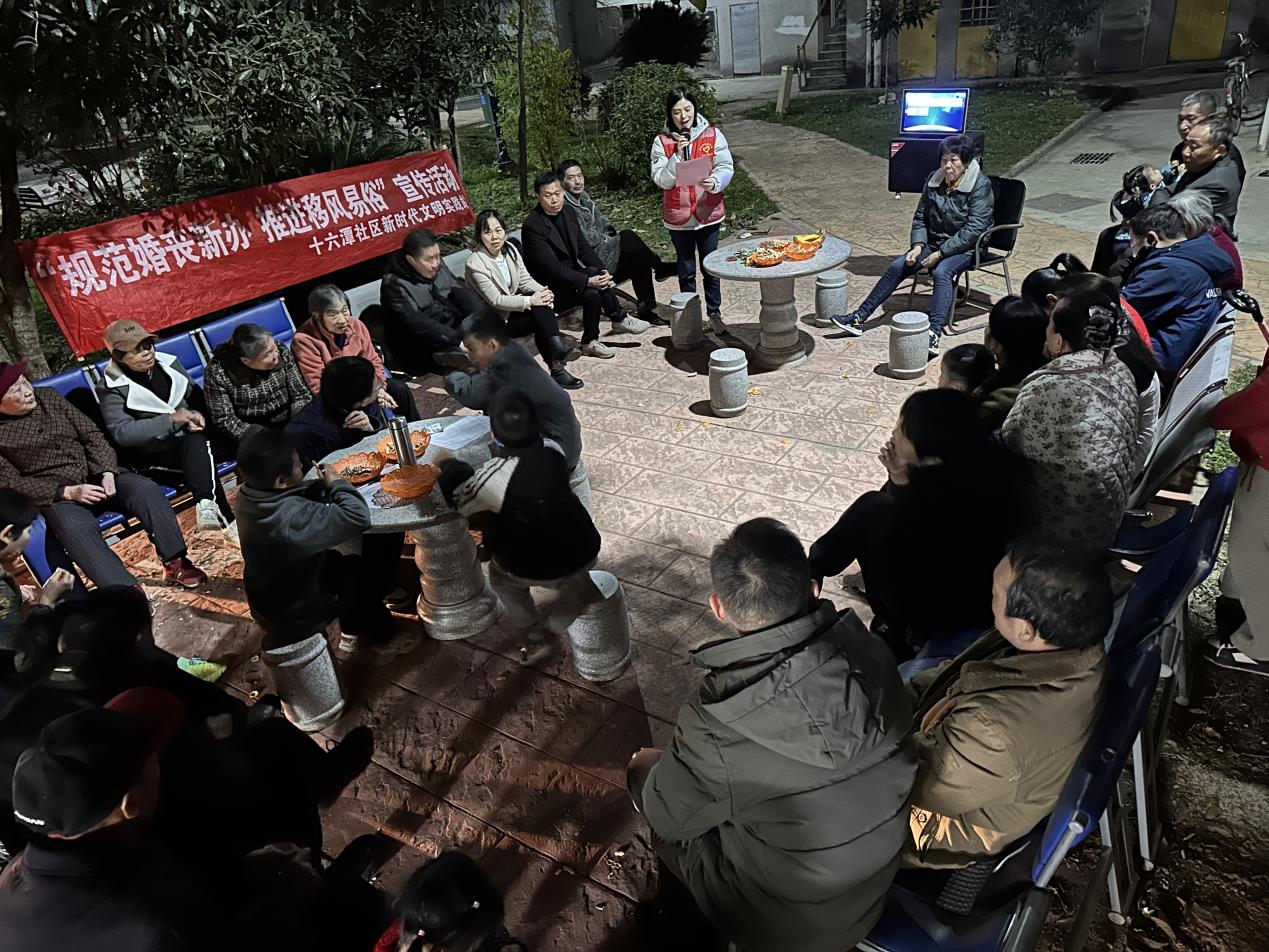 12月8日晚,咸安区温泉街道十六潭社区新时代文明实践站在清水别院小区举办“星空夜话”居民联谊活动,辖区居民围坐一堂,共话文明新风,畅谈社区发展。