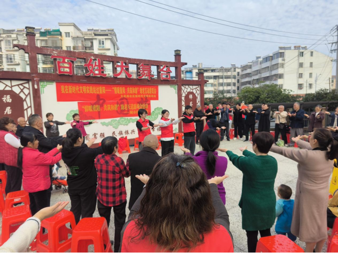 红歌过后,养生操环节让现场氛围愈发热烈。志愿者们化身“健康向导”,伴着舒缓的音乐,一步步示范伸展、拍打等动作,耐心讲解每个招式的养生原理。老人们精神饱满,跟着口令认真模仿,抬手、转腰、踢腿,动作虽不熟练却格外认真,脸上洋溢着专注的笑容,在轻松的运动中舒展身心、增进健康。